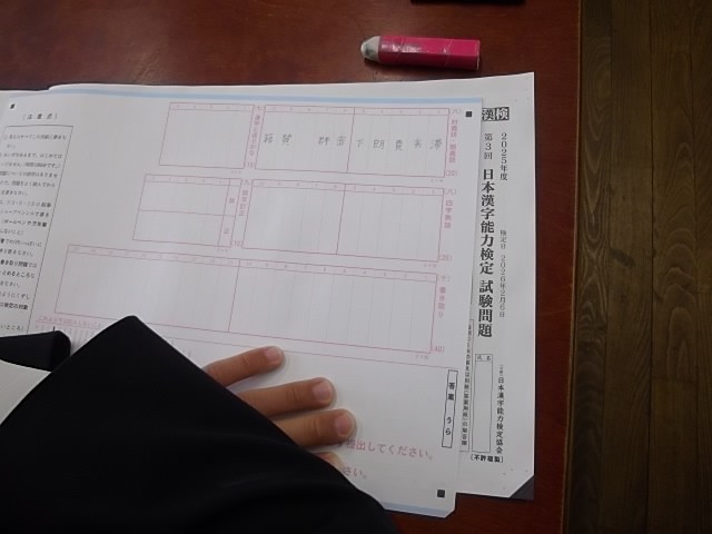 1,2年生が1,2時間めに受験した漢字検定は終了しました。