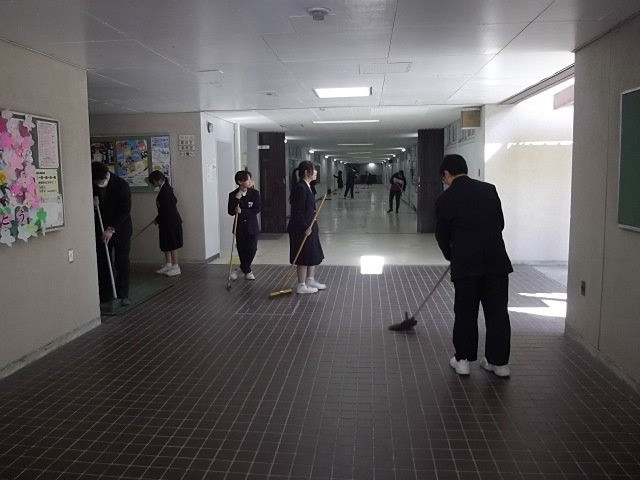 明日の卒業式にむけて掃除や会場つくりをしてくれています。