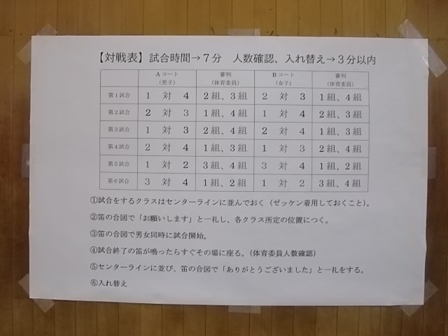 本日5,6時間め、2年生は体育館で球技大会(ドッジボール)を