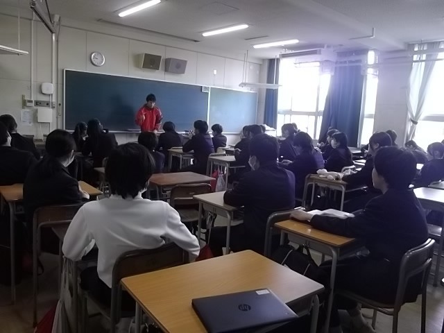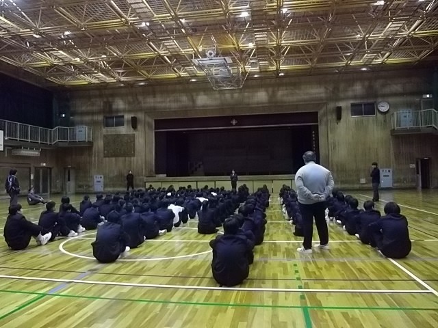 2時間め、1年生は体育館で学年集会、2年生は教室で学級活動を行なっています。