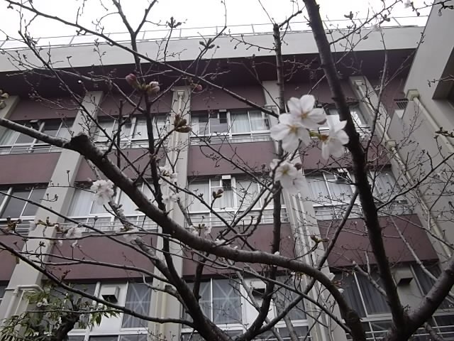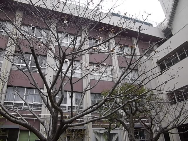 校内の中庭にある桜もほんの少しずつ