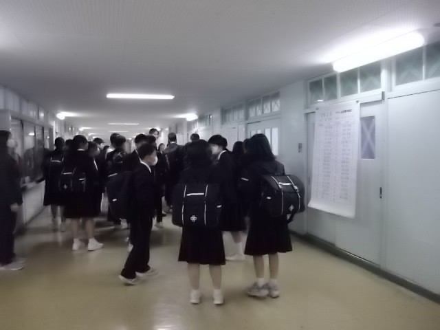 2,3年生は、ドキドキの新クラス発表を確認しました。