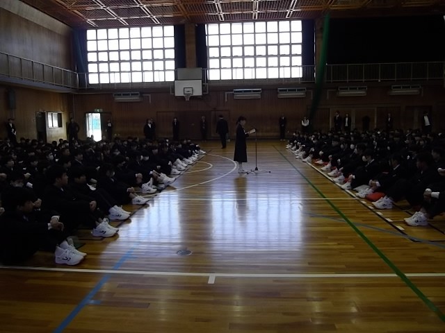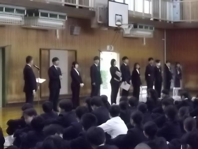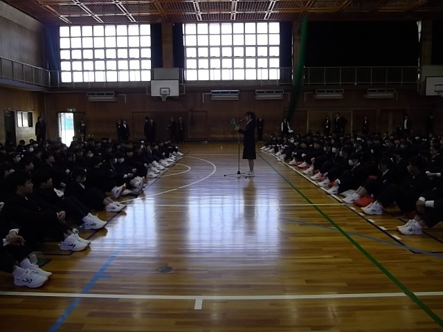 その後、体育館で新しく美津島中学校に赴任した教職員の着任式、