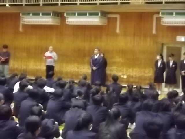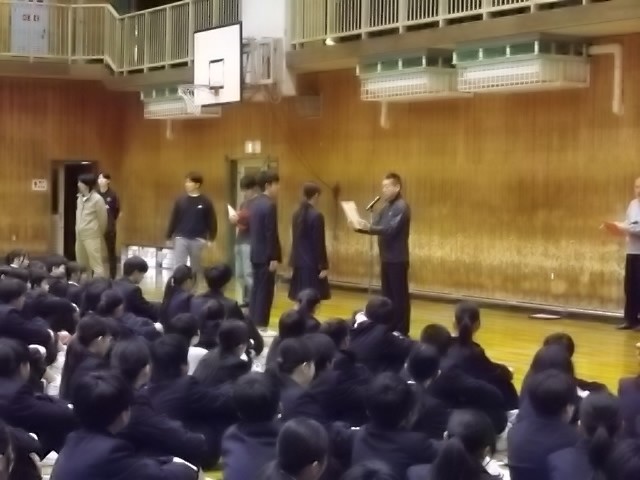 今朝の定例全校集会では、前期生徒会専門委員会の認証式を