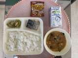 さごしのしょうゆだれかけ みそ汁 キャベツの赤じそあえ おさつチップス ごはん ...