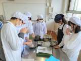 みんなで協力して、白玉粉を練って丸めて茹でて、白玉団子を作っています。