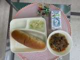 牛肉の香味焼き トマトのスープスパゲッテイ キャベツのサワーソテー パン 牛乳 ...
