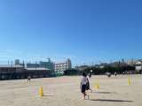 グランドでは、1年生男子がソフトボールを行っています。今日は、キャッチボールとゴ...