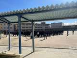 今日は、1年生で研究授業があり多くの先生方が1年生の授業を見に来ました。体育館で...