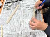 2年生の美術では、おはし作りに取り組んでいます。今日の授業のめあては、「重ね塗り...