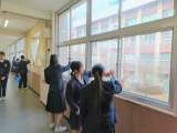 教室だけでなく、廊下の窓や壁も磨いてきれいにしています。