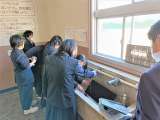 3年生の大掃除の様子です。手洗い場では、エアコンのフィルターの埃をきれいに洗い流...