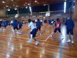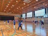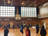 3年生の女子は、体育館でバドミントンの授業を行っています。ラリーを続けようと頑張...