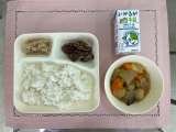 くじらのたつたあげ まる天と野菜の煮もの もやしのしょうがづけ ごはん 牛乳 日...