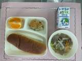 鶏肉のバジル焼き ウインナーと野菜のケチャップ煮 ブロッコリーのサラダ パン 牛...