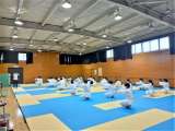 もう一クラスは、格技室で柔道の後ろ受け身を練習しています。