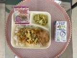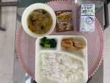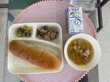 2月25日(火)本日の給食 豚肉のオイスターソース焼き 中華スープ ツナとチンゲ...