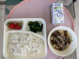 すき焼き煮 ほうれんそうのおひたし いちご ごはん 牛乳 とうふは、「畑の肉」と...