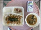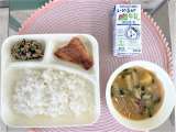 たらフライ うすくず汁 こまつなのごまあえ おさつチップス ごはん 牛乳 【正し...