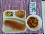 チキンレバーカツ ケチャップ煮 たことキャベツのバジルソテー パン 牛乳 たこ:...