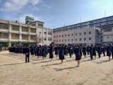 雨上がりの春の陽気の中、グランドで令和3年度修了式が行われ生徒を代表して2年生1...