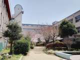 中庭の桜も8分咲きぐらいまできています。よく見ると、少し濃いピンクの花を見つける...