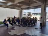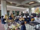 明日の離任式に向けて、吹奏楽部が玄関でリハーサルを行っています。