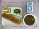 ビーフシチュー さんどまめとコーンのサラダ あまなつかん パン 牛乳 あまなつか...