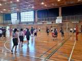 バドミントン部も先輩に教えてもらいながら、1年生が羽根を打っています。