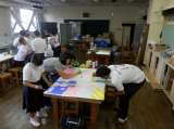 5月26日(火) 放課後には、体育祭で各学級の応援旗となる旗の作成が始まっていま...