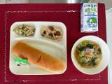 金時豆の中華おこわ 中華スープ ツナと野菜のオイスターソースいため パン 牛乳 ...