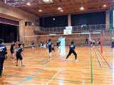 男女バレーボール部が、コートを上手に使ってサーブカットの練習をしています。