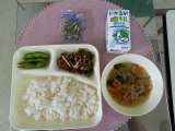 本館2階職員室に上がる階段踊り場に設置された美術部のディスプレイが、6月分に新た...