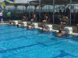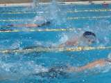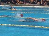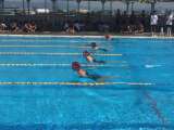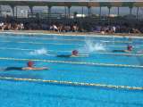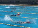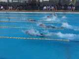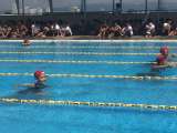 最初の種目は、出場選手全員による全員レースです。 バタフライで泳いでいる生徒も...
