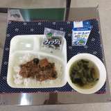 8月30日(木)、今日の給食の献立は、『マーボーあつあげ丼・中華スープ・ミニフ...