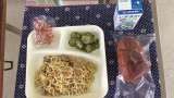 8月31日(金)、今日の給食の献立は、『和風焼きそば・きゅうりのゆず風味・パン...