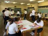2年生家庭科の様子です。 写真は、夏休みの課題で学校給食献立コンクールに応募する...