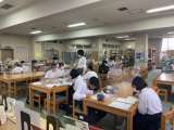 明日の中間テストにむけて、図書室ではテスト勉強をしている生徒が集まっています。