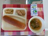 食パン いちごジャム あげぎょうざ 中華煮 ぶどう(巨峰) 牛乳