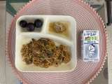 オイスターソース焼きそば もやしのしょうがづけ ぶどう(巨峰) パン 牛乳 オイ...