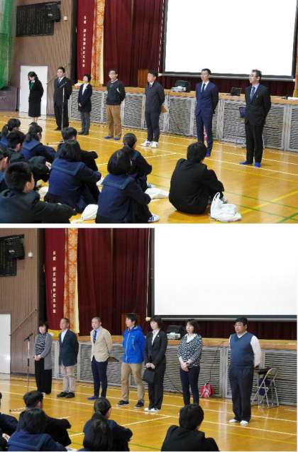 新しく来られた先生を紹介したあと、各学級や担当の先生の発表をしました。