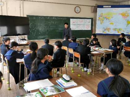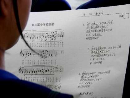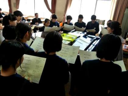 1年生の音楽では、東三国中学校の校歌を練習しました。早く覚えて大きな声で堂々と歌ってほしいです。