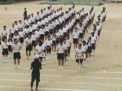 行進練習、ラジオ体操等、大きな声でみんな頑張ってました。