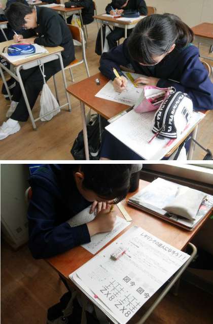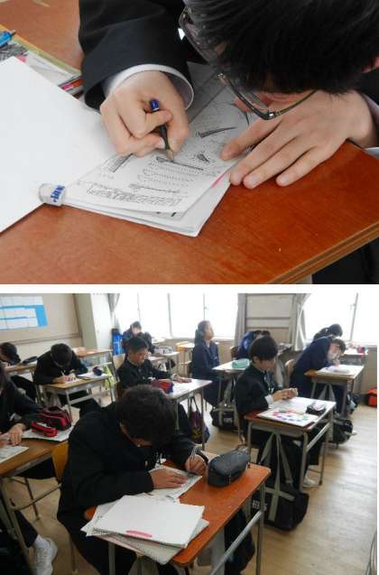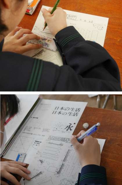 2年生の美術では、レタリングの書き方を練習しています。いろいろな文字はこうして書かれているんですね。