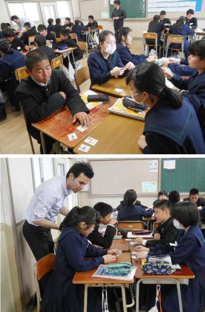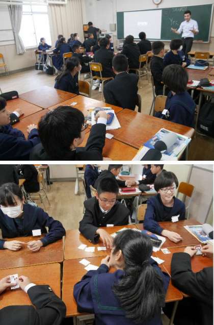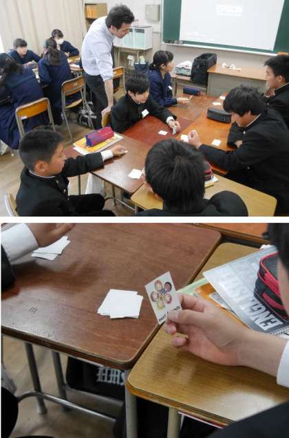 2年生の英語の授業です。ネイティブ英語のサワディ先生が、常に英語で話してすすめていきます。いろんな言い方をしてわかりやすく説明してくれています。しっかり聞き取っていきましょう。「〜が好きですか」とカードをめくりなが質問を互いにしあいます。