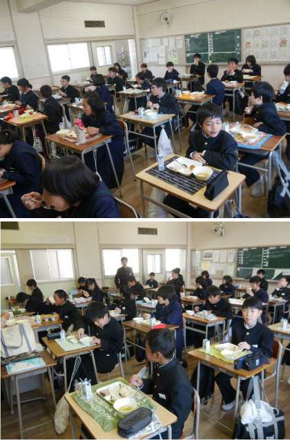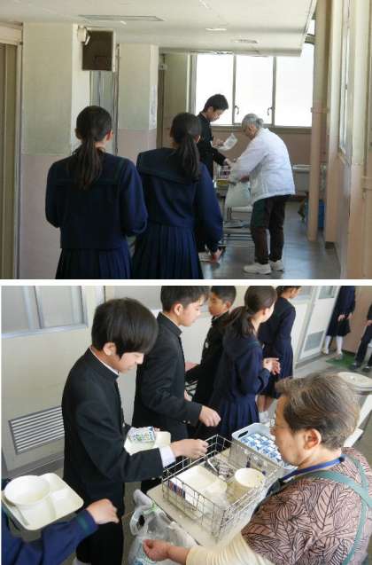 今日の給食は!いつも元気ボランティアさんが声かけて