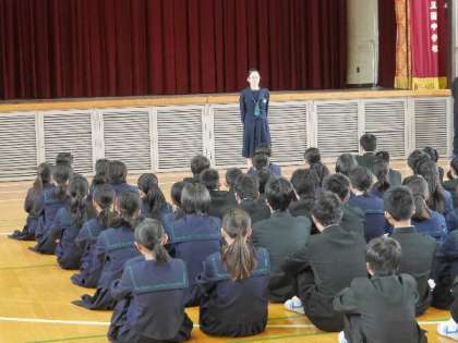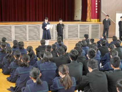 毎週木曜日は体育館で2年の朝の学年集会があります。生徒たちが司会したり反省点をだしたりしています。風紀委員からは、更衣調整期間のお知らせをポスターを作って連絡してくれました。