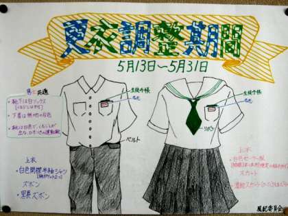 今日もお昼は暑くなってきました。夏にむかって、夏服への更衣調整期間が来週から始まります。調整期間中は、夏服と冬服のどちらでもいいのです。体感にあわせてお願いします。1年生は先月に申し込んだ夏服がまだできあがっていないので、しばらく待ってください。
