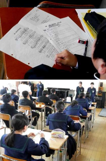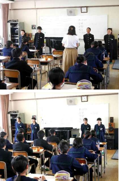 東三国中学校の校歌は覚えましたか?1年生の音楽では順に校歌をうたって、皆で乾燥やコメントを書きあっていました。