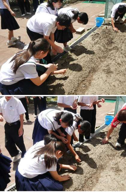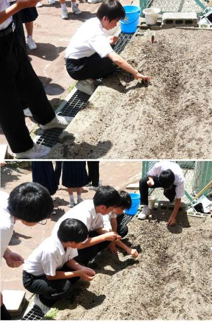 2年技術では生物育成の授業をしています。今日はラディッシュの種をまきました。うまく芽がでてくれることを楽しみにしています。